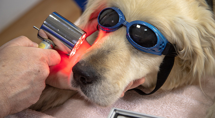 Laser therapy for pets is a non-invasive, drug-free treatment that uses deep-penetrating light to reduce pain and inflammation and accelerate healing for both acute and chronic conditions. It works by stimulating cells through a process called photobiostimulation, which can help speed up wound healing, reduce pain from arthritis or injuries, and treat a wide variety of conditions like sprains, skin issues, and post-surgical pain. Treatments are painless and typically last 5 to 15 minutes, though the length and frequency vary depending on the condition.